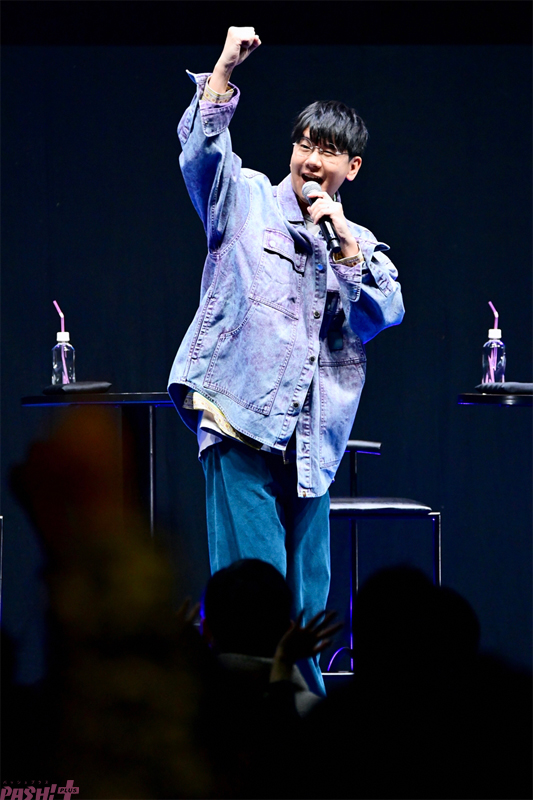 窮地の中で秘めた力を覚醒させるモモを演じる若山さんは「この日をとても楽しみにしていました」と緊張の面持ち。ステージの袖からも歓声が聞こえたそうで「興奮で震えてきた」と話すと、怪奇現象オタクでUFO肯定派のオカルンに抜てきされた花江さんも「期待値が高い」とファンの熱気を肌で感じていた。役柄について話が及ぶと、若山さんは「幽霊肯定派で、おばあちゃんが霊媒師。ギャルです」と笑顔でモモを紹介。演じる上ではギャルっぽい気だるさもポイントだといい、「ツッコミをすることも多いんですが、力が入りすぎてしまうと気だるげな部分がなくなってしまう。ほどよく力を抜きつつ、自由にやることを意識しています」とこだわりを明かした。