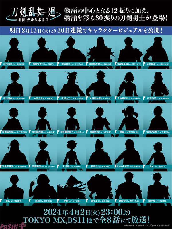2024年4月2日より放送開始となるTVアニメ『刀剣乱舞 廻 -虚伝 燃ゆる本能寺-』の新情報として、物語を彩る30振りの刀剣男士が作中に登場することが明らかとなりました。