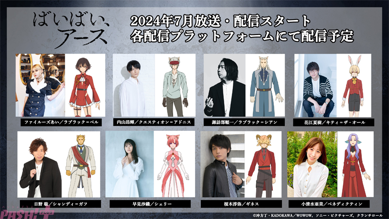 解禁済みとなる主人公の少女・ラブラック=ベル役のファイルーズあいさんに続き、新キャラクター情報と、声を担当する豪華キャスト陣も一挙公開となりました。クエスティオン=アドニス役に内山昂輝さん、ラブラック=シアン役に諏訪部順一さん、キティ=ザ・オール役に花江夏樹さん、シャンディ=ガフ役に日野聡さん、シェリー役に早見沙織さん、ギネス役に榎木淳弥さん、ベネディクティン役に小清水亜美さんと実力と人気を兼ね備えたキャスト陣がメインキャラクターたちを担当します。