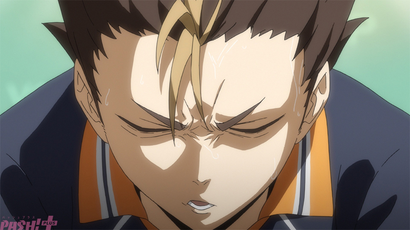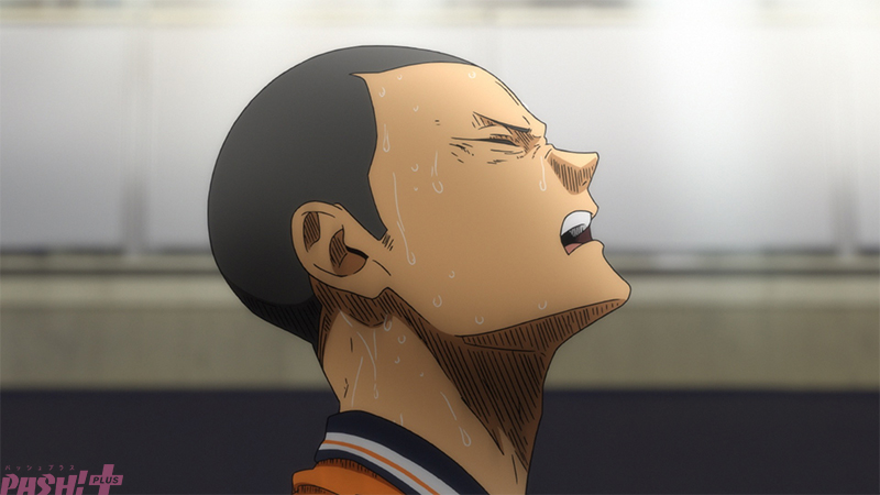 和太鼓鳴り響く迫力の応援の力もありリズムを取り戻しはじめた烏野高校だが、影山、日向の連携をコピーした宮兄弟による“変人速攻”が決まるなど稲荷崎も勢いを増す。拮抗する勝負の中でここまで調子が上がらない田中は、宮侑の強烈なサーブのターゲットにもされ、スパイクはブロックにかかり、コースを狙えばアウトになりと、一時は折れてしまいそうなほど弱気な面も見せて葛藤する。