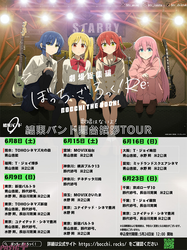 前編が6月7日(金)、後編が8月9日(金)となる『劇場総集編ぼっち・ざ・ろっく!Re:/Re:Re:』の“ぼっち舞台挨拶”や“ロック舞台挨拶”などキャスト登壇舞台挨拶が開催決定。さらに、先着来場者特典も発表されました。