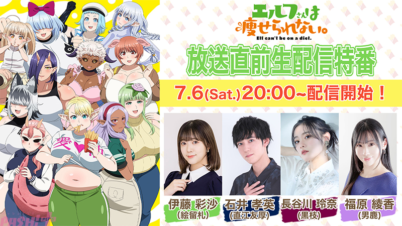 2024年7月6日放送開始のTVアニメ『エルフさんは痩せられない。』より、第1話「森の妖精」のあらすじ&先行カットが公開。さらに、放送直前生配信特番の実施も決定しました。