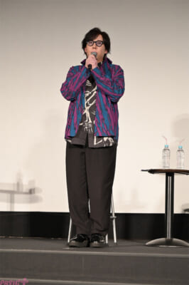 収録は昨年行われましたが、現在制作真っ只中で「公開ギリギリまで制作しているかもしれません(笑)」と菊島。またIMAX版については「とても大きいスクリーン、そして素晴らしい音響設備で迫力もすごいので、ぜひ見てください」と熱を持って訴えかけていました。IMAXエクスクルーシブビジュアルも公開されると会場から「おお!」というどよめきが。キャラクター原案のso-binの許可を得て原作13巻のカバーイラストが使用され、新たにデザインし直したとのこと。
