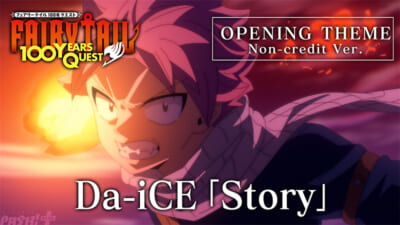 また、本作のノンクレジットオープニング・エンディング映像が解禁となりました。オープニング映像はテーマ楽曲“Da-iCE”「Story」の疾走感と勢いのあるナンバーにのせ、”100年クエスト”に挑むナツ達「妖精の尻尾(フェアリーテイル)」メンバーそれぞれのダイナミックなバトルシーンや巨大な竜と対峙する姿