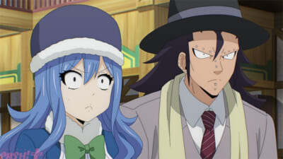 そんな中、グレイが水神竜の名を口にすると、温和だった町人の態度が一変して……!? 一方「妖精の尻尾」には、新人トウカのある言動から彼女を怪しむガジルとジュビアの姿があった。