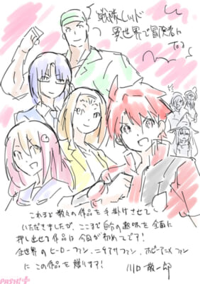 その他、TVアニメ化発表に合わせ、原作・中吉虎吉さんよりお祝いイラストとコメントが到着。お祝いイラストでは、原作コミック第1巻の書影にも登場している、キズナレッドとイドラの2人が描かれています。
