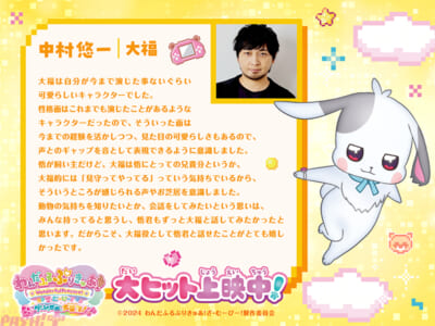 そんな中村さんの起用理由について、プロデューサーの舟腰優子さんは「大福のキャラクターとして“クールな子”というのは決まっていたなかで、TVシリーズのスタッフとも相談し、中村さんに演じていただきたいと思いました。検討を進めるうえで、『わんぷり』のキャラクターたちを、引っ張ってくれるような存在の方がいいだろうとなり起用しました」と中村さんへの期待と信頼が読み取れます。