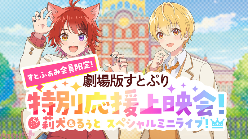 7月19日(金)から公開中の『劇場版すとぷり はじまりの物語~Strawberry School Festival!!!~』は、2024年10月19日(土)・20日(日)にTOKYO DOME CITY HALLで全4公演にわたる応援上映会「【すとふぁみ会員限定!】劇場版すとぷり 特別応援上映会!~莉犬&るぅと スペシャルミニライブ!~」の開催が決定しました。