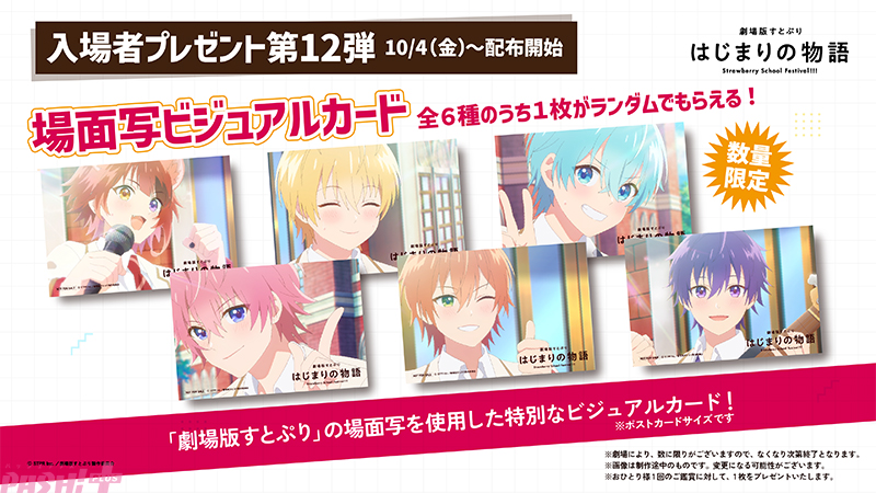 ブシロードのグループ会社にあたるブシロードムーブとSTPRは、映画『劇場版すとぷり はじまりの物語~Strawberry School Festival!!!~』より、入場者プレゼント第12弾の情報が解禁。場面写ビジュアルカードに決定しました。