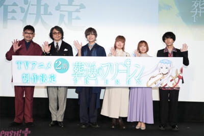 岡本さんは「とっても嬉しいですし、種﨑さんの喜ぶ姿でさらに嬉しくなりました。早くスケジュールの調整来ないかな? と本当に待ってました。」とコメントし、市ノ瀬さんは「やっと言えた! という気持ちと、またフェルンとしてフリーレン、シュタルクと冒険を続けられて嬉しいです」と語り、小林さんも「僕も原作から好きで、いちファンとしてこの先描かれている物語がとても楽しみです」と述べ、東地さんは「やるだろうとは期待はしていましたけど、本当に楽しみです!」、上田さんも「これだけの反響をいただいた上での2期なので、武者震いがするというのはまさにこのことだと思いました。ぜひご期待ください!」と語り、キャスト陣6名それぞれがTVアニメ2期に対する期待を煽った。