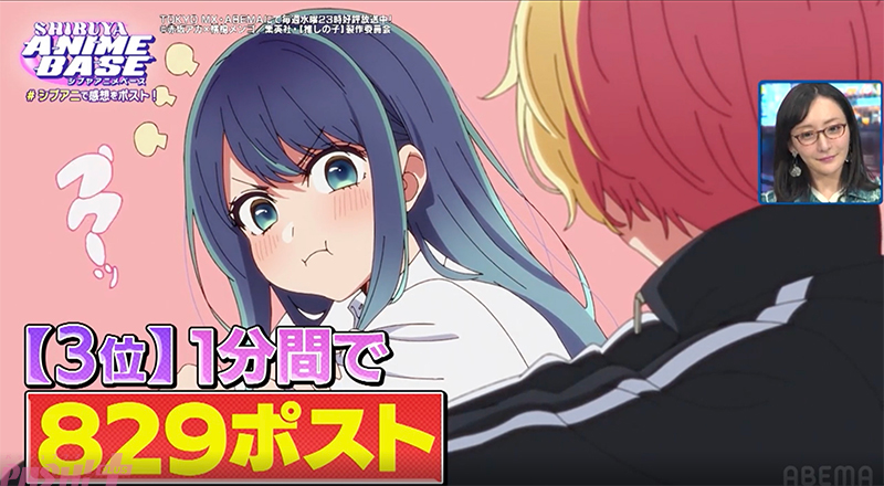 続いてベスト3の発表に。第3位は第12話、孤立する彼氏に寄り添うも思わぬ一言を言われた際のあかねのプクーっと口を膨らませるシーンが1分間で829ポストを記録したことが明かされます。続く第2位は第14話の師匠・吉祥寺先生の優しさと弟子・アビ子の変化が描かれたシーンで、なんと1分間で1067ポストを記録しました。