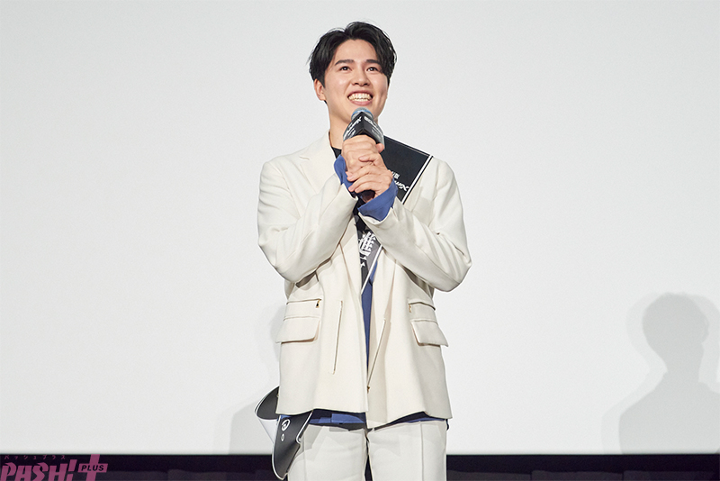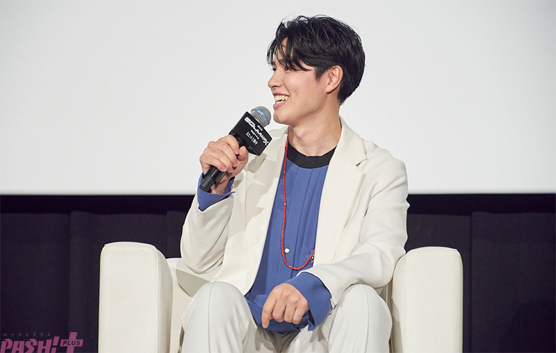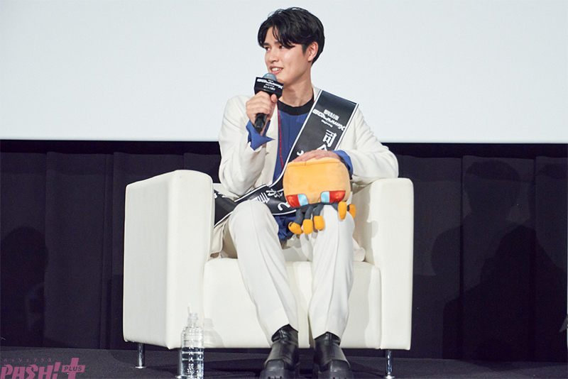 トークコーナー最後は、松澤さんから土屋さんへの質問コーナーがスタート。「ガンダムに乗るとわかったのはオーディションの段階。合格したときは興奮した」とシュウジ役に選ばれたときのことを回想。さらに、好きなシーンについて、まだ選びきれないと話ながらも、「先行上映版冒頭のBGMが流れた瞬間に、その世界観にグワッと入っていった」と話していた。また、シュウジについては、「う~ん、これは悩ましい質問で。最後まで見て! それしか言えません!」とだけ話し、その謎めいた存在の正体が明かされるのはまだ先となりそうだ。