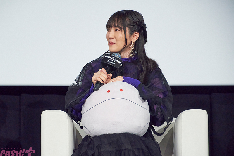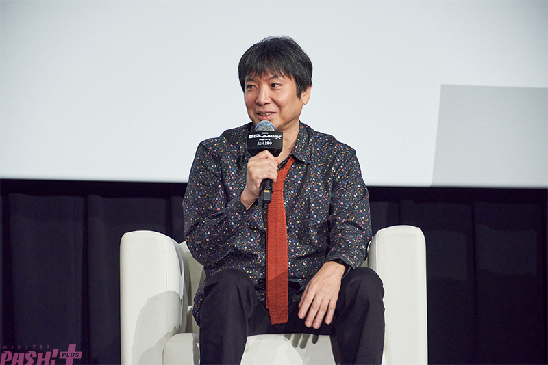 トークパート後半は、アンバサダーに就任した土屋さんに質問役をバトンタッチ。初仕事として、鶴巻監督、榎戸さんに話を聞くコーナーがスタートした。