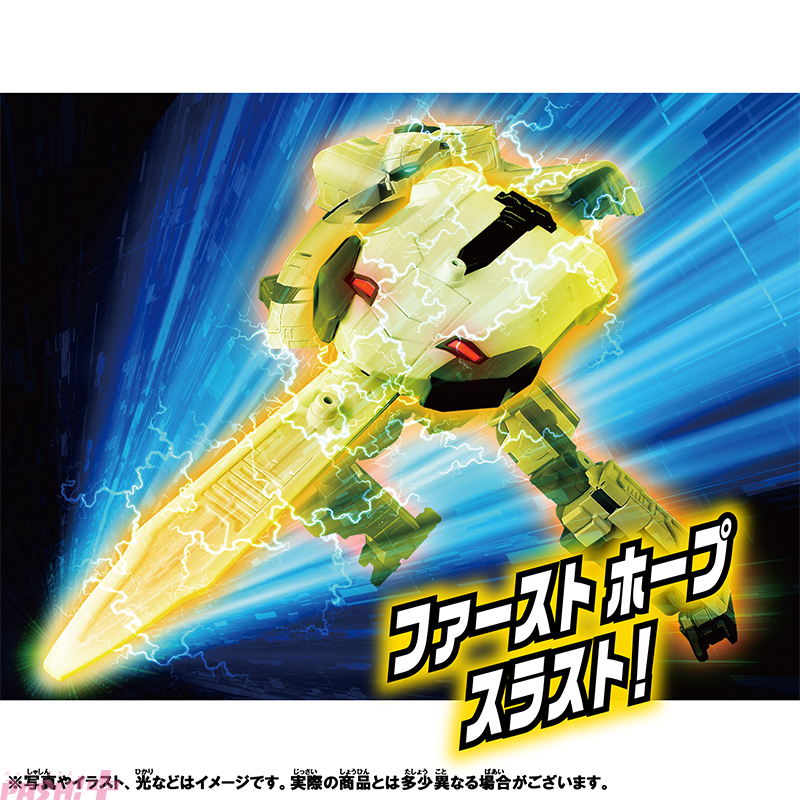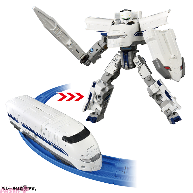 新幹線300系がシンカリオンに変形するのは初めてです。新幹線1両編成からシンカリオンに変形し、同梱の大型武器「ホープブレード」、「ホープシールド」を装備することができます。