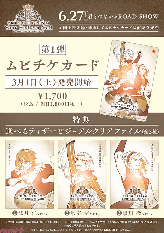 劇場アニメ『KING OF PRISM』シリーズ最新作となる『KING OF PRISM-Your Endless Call-み~んなきらめけ!プリズム☆ツアーズ』が2025年6月27日(金)より全国の劇場にて公開することが決定しました。あわせて特報映像、ティザービジュアルも公開となり、ティザービジュアルを使用した第1弾ムビチケカードが明日3月1日(土)より発売開始となります。