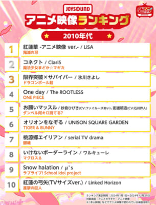 エクシングは、JOYSOUNDで配信中のアニメ映像で歌えるカラオケを対象とした「アニメ映像カラオケランキング」を公開しました。