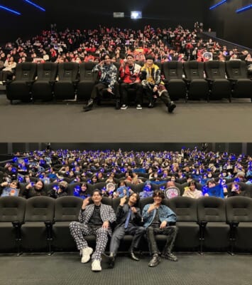 公開と同時にスタートした劇中のラップバトルFirst Stageの対戦相手の地へ乗り込み登壇する、怒涛の<公開記念舞台挨拶>は後半戦に突入し、3月1日(土)にはヨコハマ・ディビジョン“MAD TRIGGER CREW”の碧棺左馬刻役・浅沼晋太郎さん、入間銃兎役・駒田航さん、毒島 メイソン 理鶯役・神尾晋一郎さんが【大阪】に、2日(日)にはイケブクロ・ディビジョン“Buster Bros!!!”の山田一郎役・木村昴さん、山田二郎役・石谷春貴さん、山田三郎役・天﨑滉平さんが【名古屋】へ赴き、劇場に駆け付けたファンとともにFirst Stageの“敵陣”で舞台挨拶を開催!