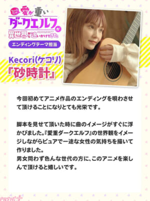 脚本を見せて頂いた時に曲のイメージがすぐに浮かびました。『愛重ダークエルフ』の世界観をイメージしながらピュアで一途な女性の気持ちを描いて作りました。