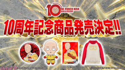 10周年記念ビジュアルと10周年記念ロゴを使用した新商品の企画が進行中! さらに、第1期・第2期に発売した商品の復刻発売が決定! 詳細はA-on STORE『ワンパンマン』特設ページをご覧ください。