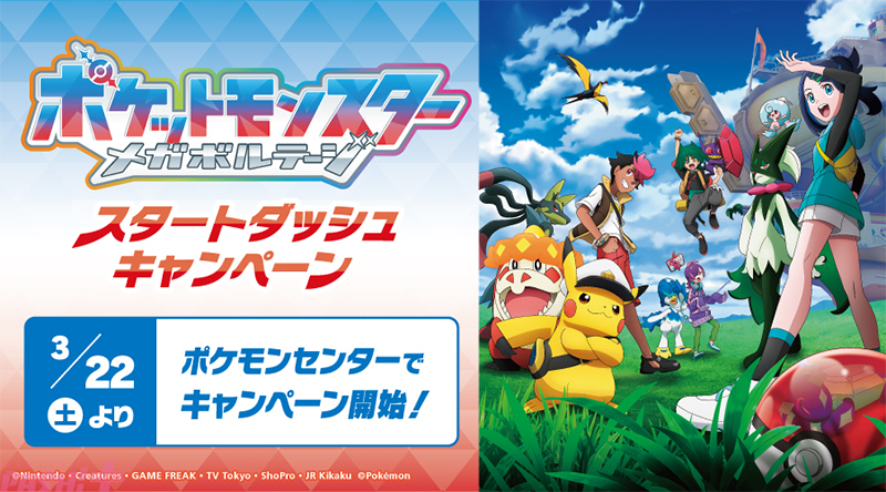 新章「メガボルテージ」編の放送を記念し、全国のポケモンセンターで「ポケットモンスター メガボルテージ スタートダッシュキャンペーン」の開催が決定。