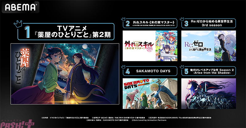 新しい未来のテレビ「ABEMA」は、2025年新作冬アニメの中間ランキング上位5作品を発表しました。