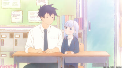 エンディング映像では、shallmが歌うエンディングテーマ『トワイライト』にのせて、教室の片隅の“いつもの席”で過ごす阿波連さんとライドウくんにスポットが当てられています。最初はライドウくんのことを意識しながらも近づけずにいた阿波連さんが、机と机の間にある“数センチの壁”を乗り越えて彼との距離を縮めていく様子を描いた“あはれ”な映像となっています。