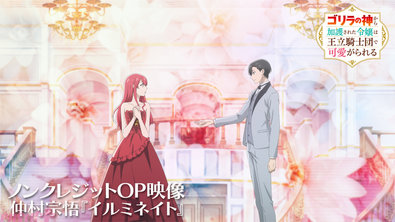 TVアニメ『ゴリラの神から加護された令嬢は王立騎士団で可愛がられる』メインPVがいよいよ公開! 王立騎士団の隊長たちや謎の美青年も登場し、【ゴリラの神の加護】を得た少女ソフィア・リーラーが先輩のルイや同級生たちと様々な困難に立ち向かう様子を描いています。仲村宗悟さんが歌うオープニング主題歌『イルミネイト』の音源もPVで初公開となりました。