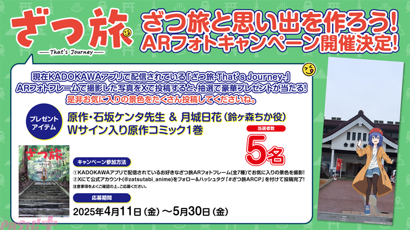 また、KADOKAWAアプリで配信されている『ざつ旅-That’s Journey-』ARふぉとフレームで撮影した写真をX(旧Twitter)で投稿すると抽選で豪華プレゼントが当たるキャンペーンも開催されています。