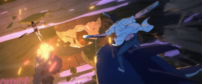 また、ビームの背中でチェンソーマンが叫ぶド迫力の大型スタンディと、ポチタの可愛らしいミニスタンディの設置が決定! ぜひ、映画館でいち早く『チェンソーマン』の世界観をお楽しみください。大型バナーと各種スタンディは、8月1日(金)より全国の映画館(一部劇場をのぞく)にて順次掲出予定となっています。そして、先日解禁され大きな話題となった予告映像より、アクションあり! 青春あり! 各キャラクターの印象的なシーンを収めた場面カットが公開となりました。