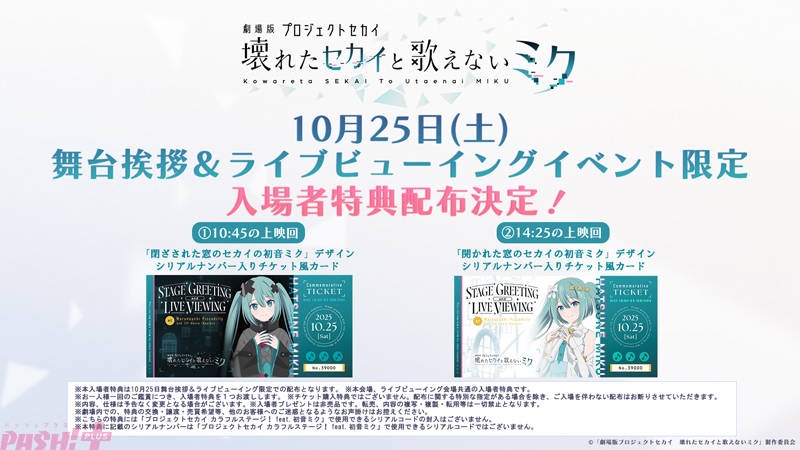 映画『劇場版プロジェクトセカイ 壊れたセカイと歌えないミク』の舞台挨拶が10月25日(土)に丸の内ピカデリーにて開催決定。全国の劇場でのライブビューイング実施も発表されました。