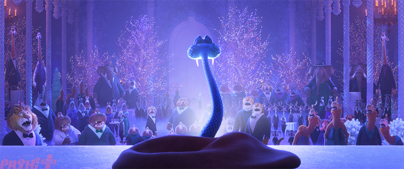 ズートピアに100年ぶり現れたヘビの存在に、会場内は大パニック……。屈強そうに見える動物たちまでもが、四方八方に逃げ惑う。一方ゲイリーは、ステージ上にいたズートピア創設者一族の長で、街で絶大な権力を握るオオヤマネコの実業家ミルトン・リンクスリーの体にグルグルと巻き付くと、展示されていた“日誌”を奪い、とてつもないスピードで逃走を図る……!