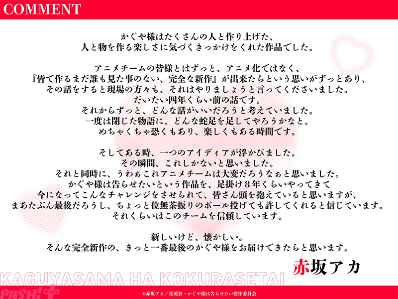 完全新作劇場版『かぐや様は告らせたい』完結編が制作決定&特報映像解禁! 赤坂アカさんによる完全書き下ろし原案にて鋭意制作中