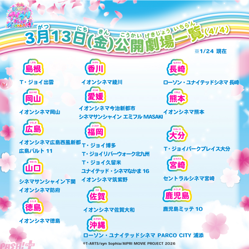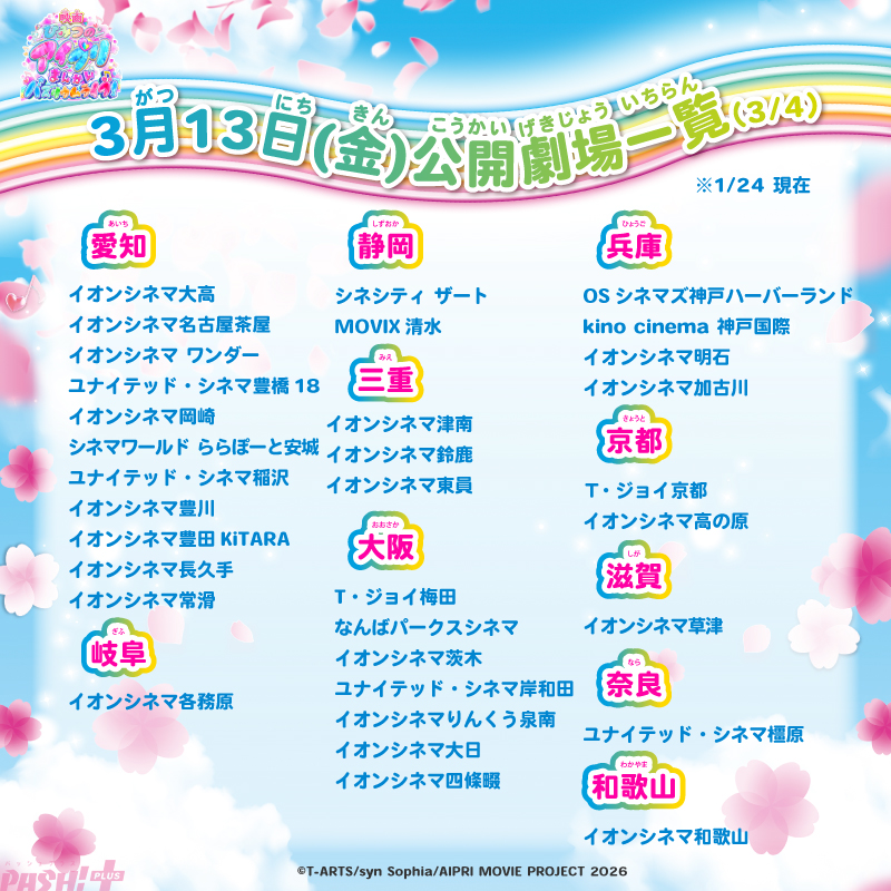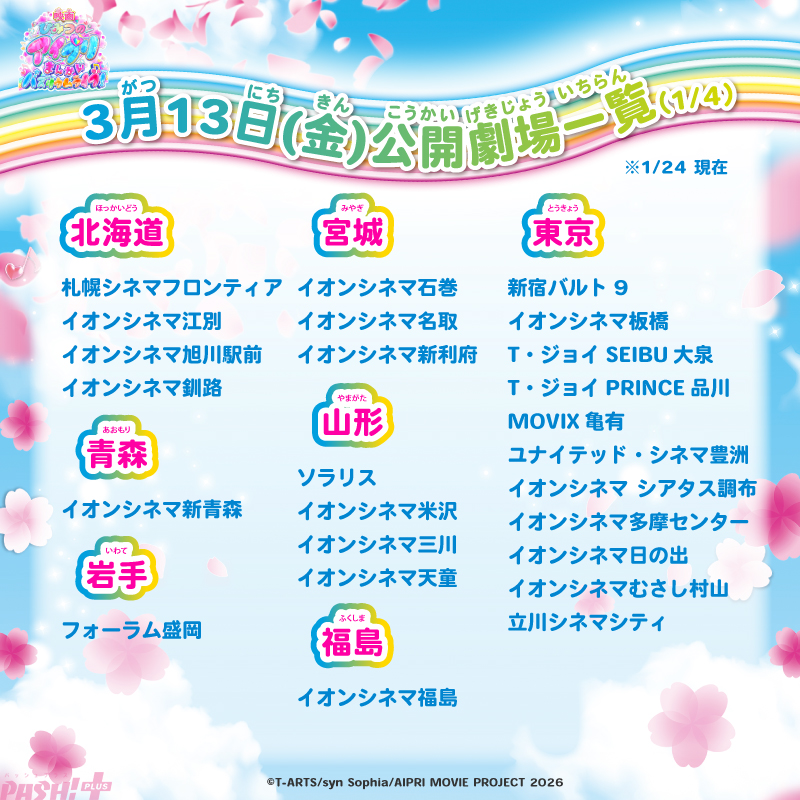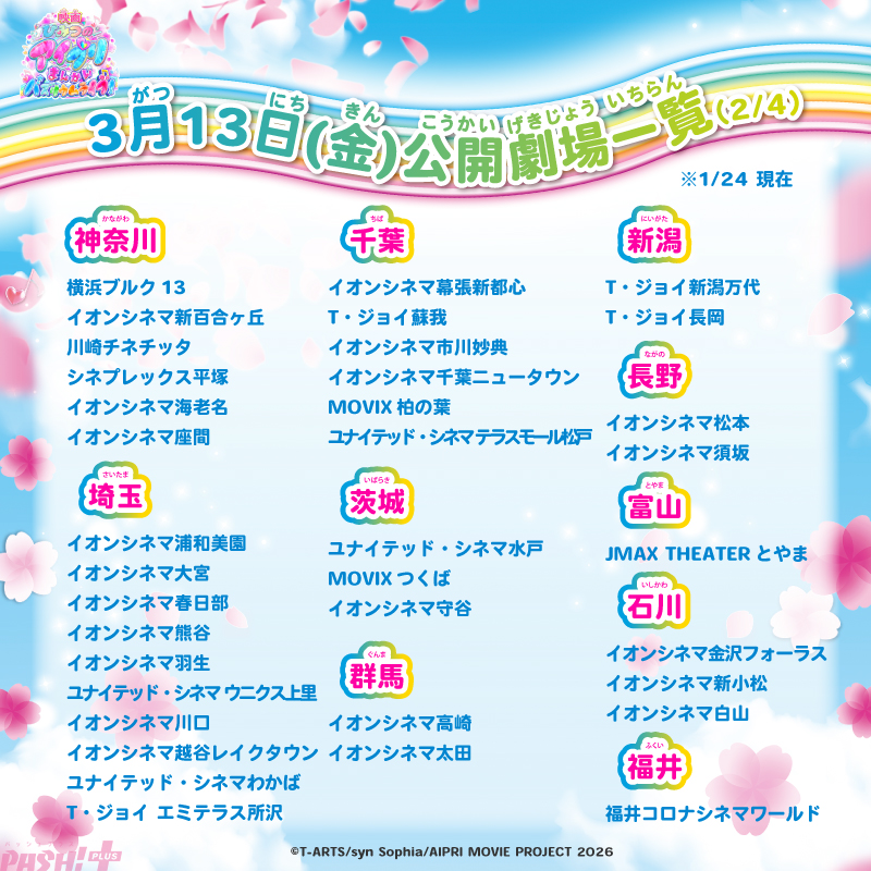 その他、本作の第2弾特典「まんかい!きらきらアイプリシール」付きムビチケカードが1月25日(日)に販売開始となります。第2弾特典付きムビチケカードは全国の映画館(一部劇場を除く)にて1月25日(日)より販売を開始。「まんかい!きらきらアイプリシール」はなくなり次第終了の数量限定となります。なお、本作の上映劇場が続々追加され116館(1月24日(土)現在)となりました。お近くの劇場にて、ぜひ本作をお楽しみください!