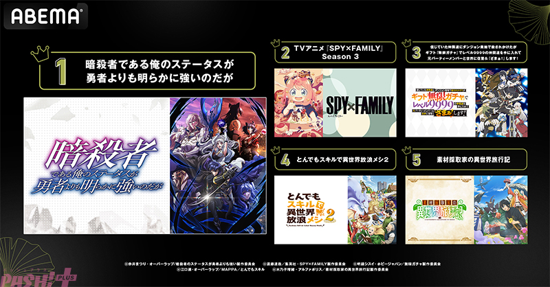 ABEMAは、2025年新作秋アニメの最終ランキング、上位5作品を発表しました。