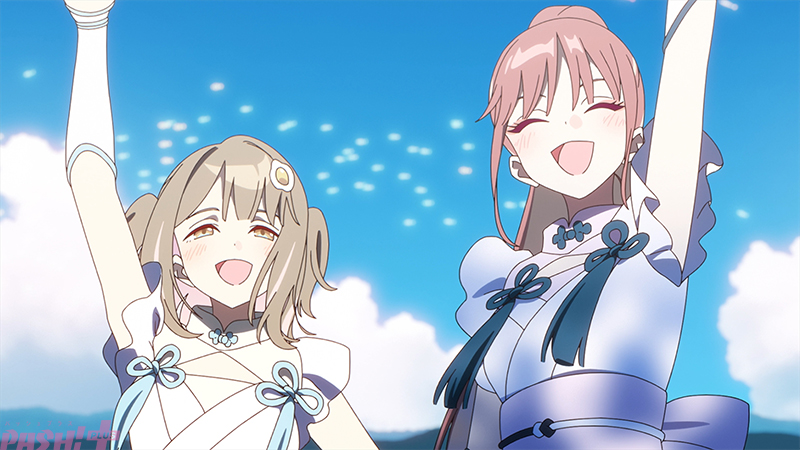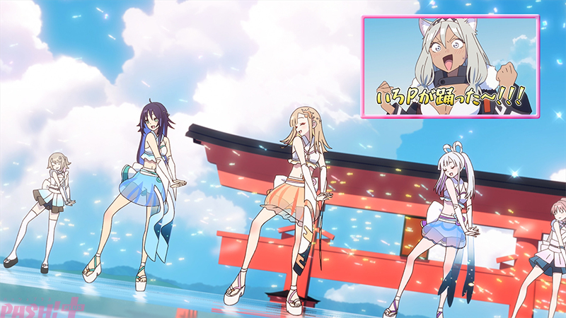 解禁された本楽曲のミュージックビデオは、山下監督自らディレクションを務めた完全新作映像で構成。本編では描かれなかった酒寄彩葉(cv.永瀬アンナ)の幼少期やかぐやと彩葉の日常、ヤチヨが胸に秘めた思い、そして物語の後日談を描いている。さらに、ライブパートではかぐや、彩葉、ヤチヨが水着風の新衣装でパフォーマンスを披露! 歌うかぐや、ヤチヨとともに彩葉がダンスをする姿には「いろP(彩葉の愛称)が踊った~!!」と忠犬オタ公が思わず実況で叫ぶ場面も。