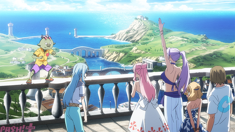 【魔国連邦(テンペスト)】の開国祭を終え、リゾート島で束の間の休息を過ごすリムル、ヴェルドラ、ベニマル、シュナ、シオン、ソウエイ、ゴブタ、ヒナタ、ルミナス、エルメシア、ミリムたちが島を満喫している様子が映し出されます。