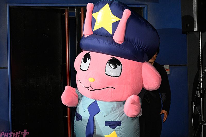 このまさかまさかの展開、なんと亀山監督の発案でポッピーくんに扮していたそうで「『せっかくだし着ぐるみが出てくれたら嬉しいよね、僕がそこから出てきたら面白くないですか??』って軽口してたら、本当にやることになってました(笑)想像以上にしんどくて太ももパンパンです。皆さんありがとうございます」とまんざらでもない様子で挨拶し、会場はどよめき収まらぬままに笑いと拍手で包まれた。