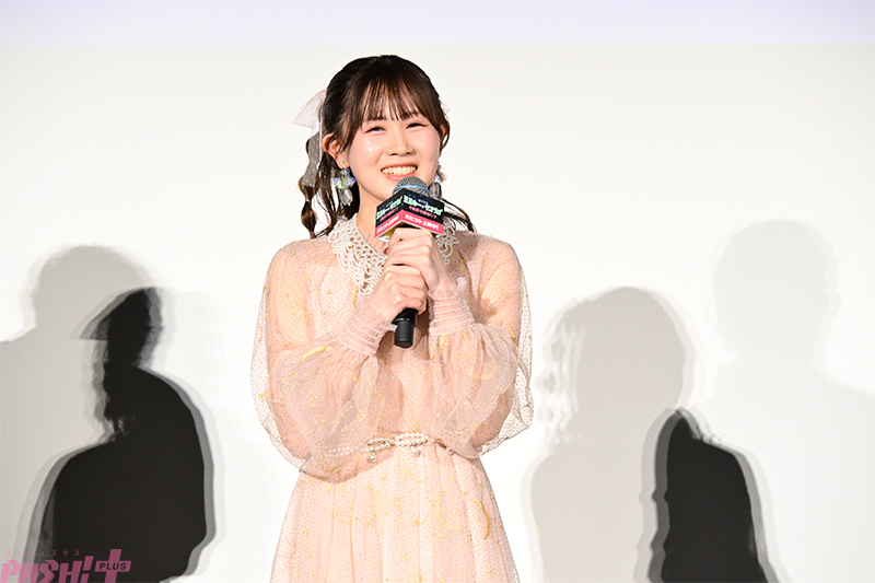 小松もこの無茶ブリに少し照れつつ「普段はアニメを見ない周囲の方々からも声をいただく機会がすごく多くて、背中を後押ししてもらえた作品になったこともあり、また今回リョーコを演じられる機会があって、すごく楽しく自信を持ってお届けすることができました。仮にリョーコが合コンに行ったとして、絶対に目の前にいるはずのないアサミがいる、みたいな気まずいやつ!そんなストーリーが見てみたいです!」とミルサブへの熱い思い入れをにじませ、寺澤も「私はメインのキャストとして、劇場版が公開されるのはこの作品が初めて。それがこんなに大盛況で、沢山の方々に支持される作品であることがとても有難いです。ファンとして何回も劇場に通いたいですが、一番最初は、マキナ役の永瀬アンナちゃんと一緒に観に行こうと約束をしているので、その日を楽しみに一生懸命生きていきます!」と胸アツなエピソードとともに、「私も……何か言ったほうが……(笑)」と妄想エピソードを重ねることに恐縮しながら「アサミさんとリョーコさんのその合コンに、チハルがちょうど来店してしまいマキナに連絡して『やばいめっちゃ気まずいウケる』みたいなことやりたいです」とチハルらしさ全開の展開妄想を発表していた。