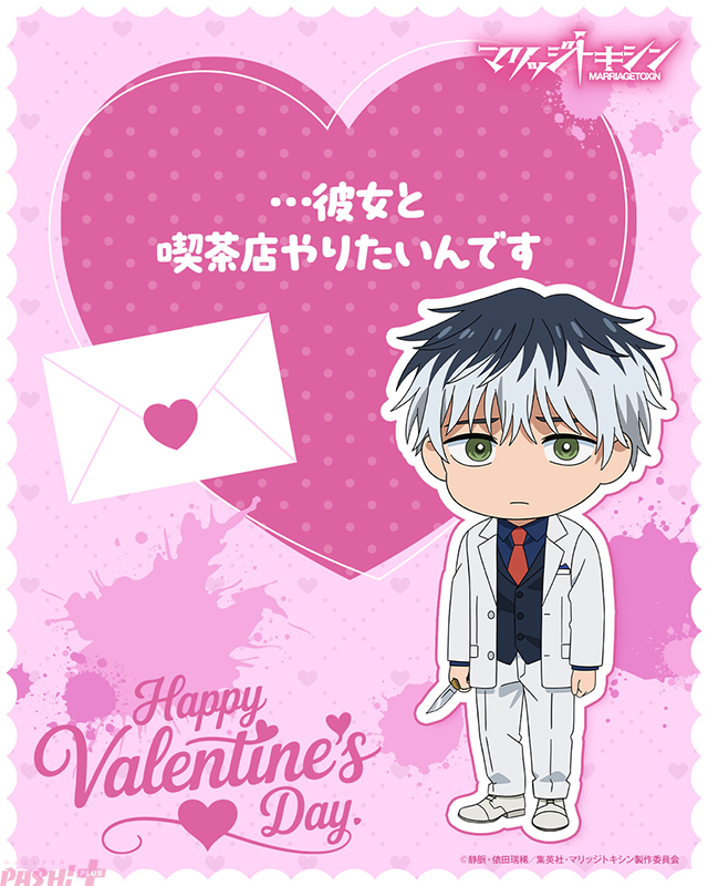 また、TVアニメ『マリッジトキシン』の公式X(旧Twitter)にて豪華キャスト直筆サイン入りのメインビジュアルポスターが当たるバレンタインキャンペーンも実施中です。