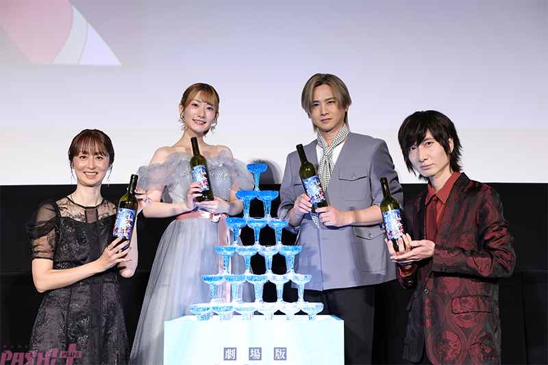 熱いトークのさなか、映画の大ヒットを祝して、“蒼海の涙編”をイメージしたブルーのシャンパンタワーが舞台上に登場。本作の主題歌であるTRUEの「ユートピア」が流れる中、4人が一斉にシャンパンを注ぐと、青く光るタワーが完成! まさに『蒼海タワー』なきらびやかな光景に、登壇者は喜びの表情を見せ、会場全体が沸き上がった。最後に、登壇者から来場者へ、それぞれがメッセージを贈った。