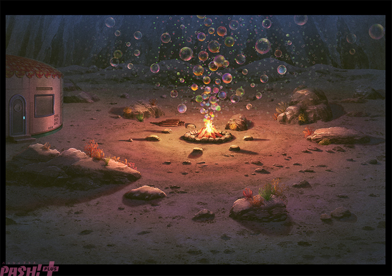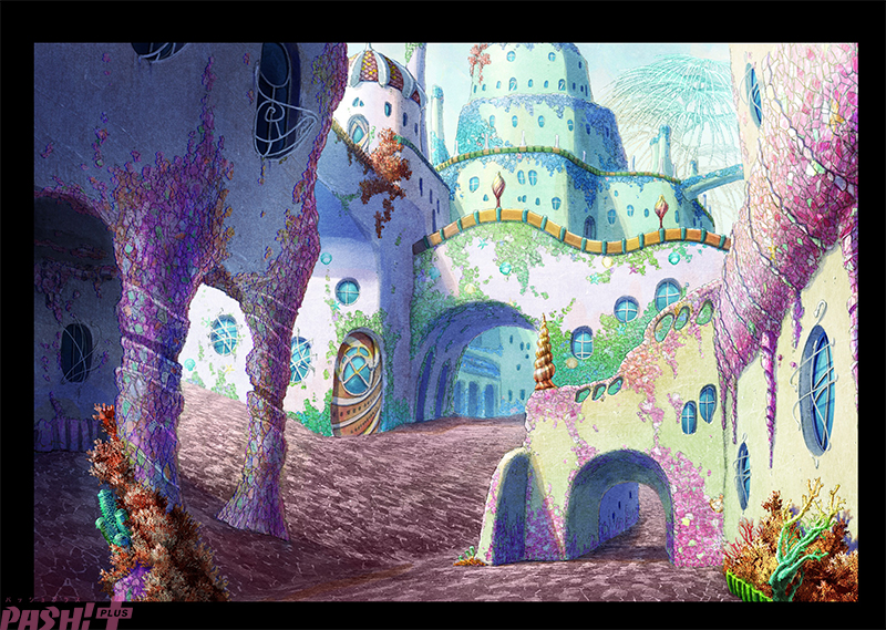 また、本作は色彩設定や美術にも徹底的なこだわりが! 解禁された美術ボードには、砂浜に鮮やかな水紋が映し出された美しい海の世界から、海底人の国「ムー連邦」の幻想的な街並み、海底でのキャンプファイヤー、そして海底人たちが恐れる「鬼岩城」と人工知能「ポセイドン」の全貌が描かれています。高解像度で描き出された未知の世界は、まさに没入感たっぷり! 本日の投稿を皮切りに、監督の“ツボポイント”や制作秘話、各キャラクターの魅力を順次紹介していくとのことです。