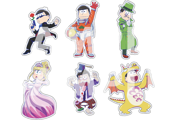 6つ子が全員そろった【全松柄】、おそ松、カラ松、チョロ松の3名がそろった【兄柄】、一松、十四松、トド松の3名がそろった【弟柄】の全3種類。
