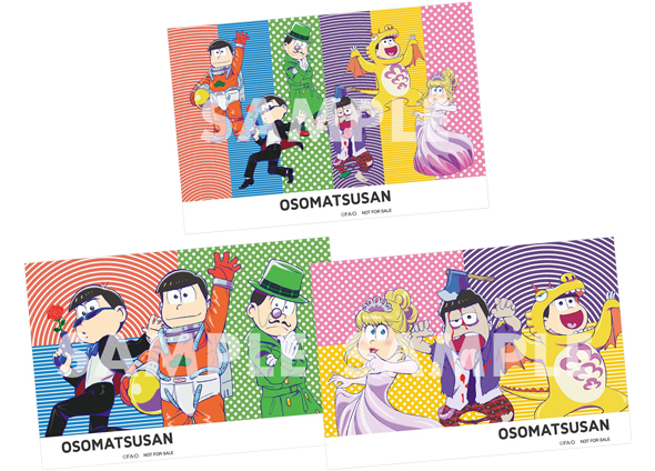6つ子が全員そろった【全松柄】、おそ松、カラ松、チョロ松の3名がそろった【兄柄】、一松、十四松、トド松の3名がそろった【弟柄】の全3種類。デザインは後日公開予定。