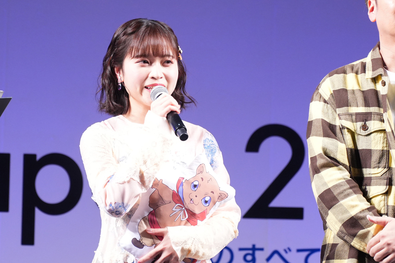 開演時間になり、ファンファーレが高らかに鳴り響くと、熊谷さんを先頭にキャスト陣がステージに登場。日原さんはムクムクが描かれたクッションを抱え、八代さんは自身が演じるルカのタオルマフラーを持って登壇されました。