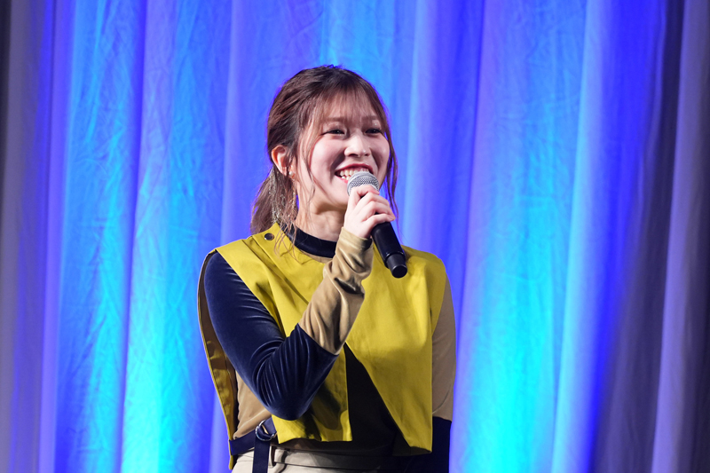 最後にアップルを紹介する番が来た青山さんは一連の流れを見ていたため、「あの~……」と小西さんの謎のキャラクターのモノマネをしようとするも、すぐに断念(笑)。「アップルは軍師として皆さんに指示を出す立場にいるので、専門的な用語を凛々しく言