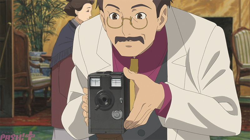 白土「横浜のゲーテ座で若林が持っているカメラは、明治37年に発売された「チャンピオン手提暗函」をモデルにしています。日本の国産カメラの中でも最も古いものの一つで、日本カメラ博物館様のご協力で実物を撮影させて頂きました。しかし、実際にどうやって持って撮影するかなどはよく分かりません。そこで構造や形状が近そうな当時のカメラ「Brownie No. 2」などの資料から、持ち方や撮影の仕方などを推測しました」