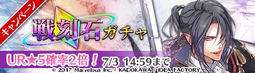 『軍テーマソング』MV連続公開&CDリリース決定を記念して、アプリ内で期間限定★5(UR)確率2倍キャンペーンが実施中。限定ガチャ&戦刻石ガチャの★5(UR)排出率が2倍にアップする。
