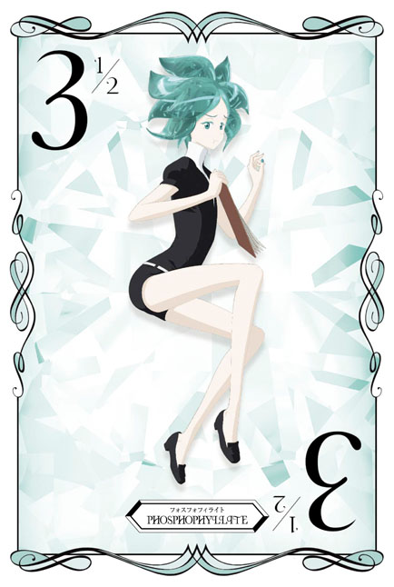 主人公のフォスフォフィライト(通称・フォス)は、美しい薄荷色の髪色で、硬度三半の脆い身体を持つ宝石。壊れやすく戦闘には向かないため、博物誌の編纂の仕事を任されることになる。