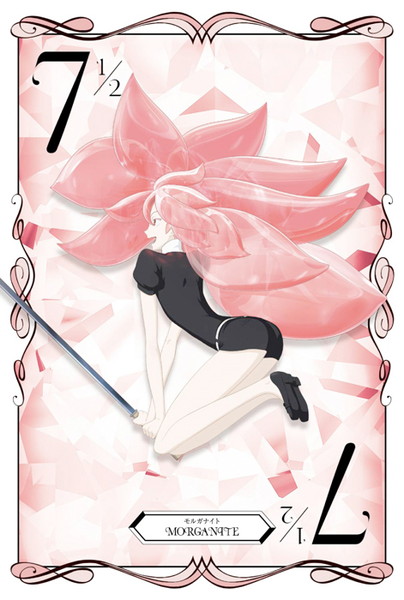 モルガナイトは、鮮やかなピンクの髪色を持つ宝石。硬度は七半で、やんちゃで口が粗い快活な性格。戦闘ではゴーシェナイトとペアを組んでいる。