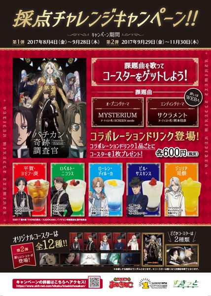 全国のカラオケまねきねこの“すきっと”で課題曲を歌って採点チャレンジに参加すると、オリジナルコースターがもらえる。さらに一部対象店舗限定で、メインキャラクター5人をモチーフにしたコラボレーションドリンクも販売される。
